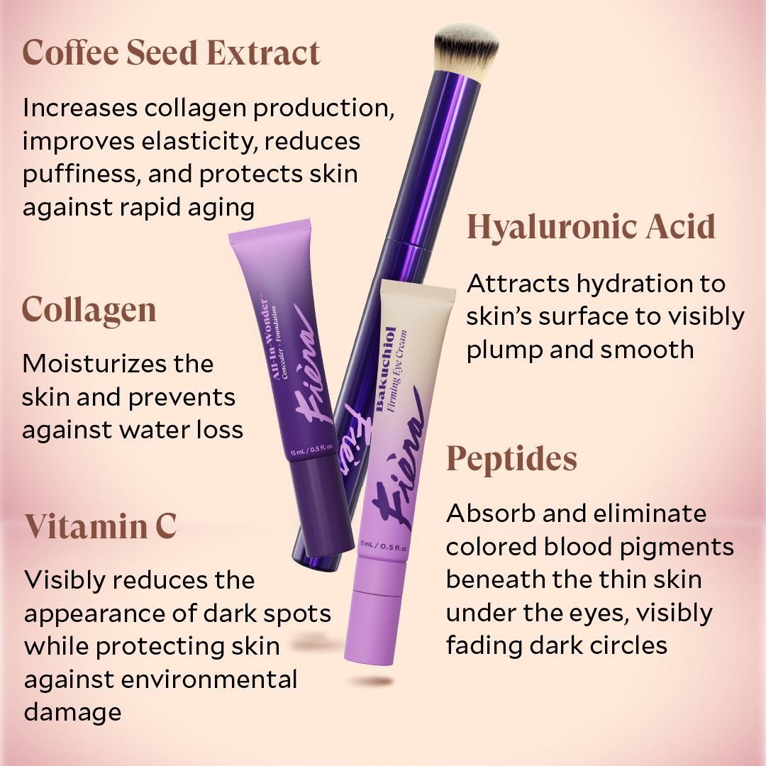 Your first-ever correct and conceal solution to visibly improve age-related dark under eye circles while immediately concealing them with flawless, crease-free full coverage.